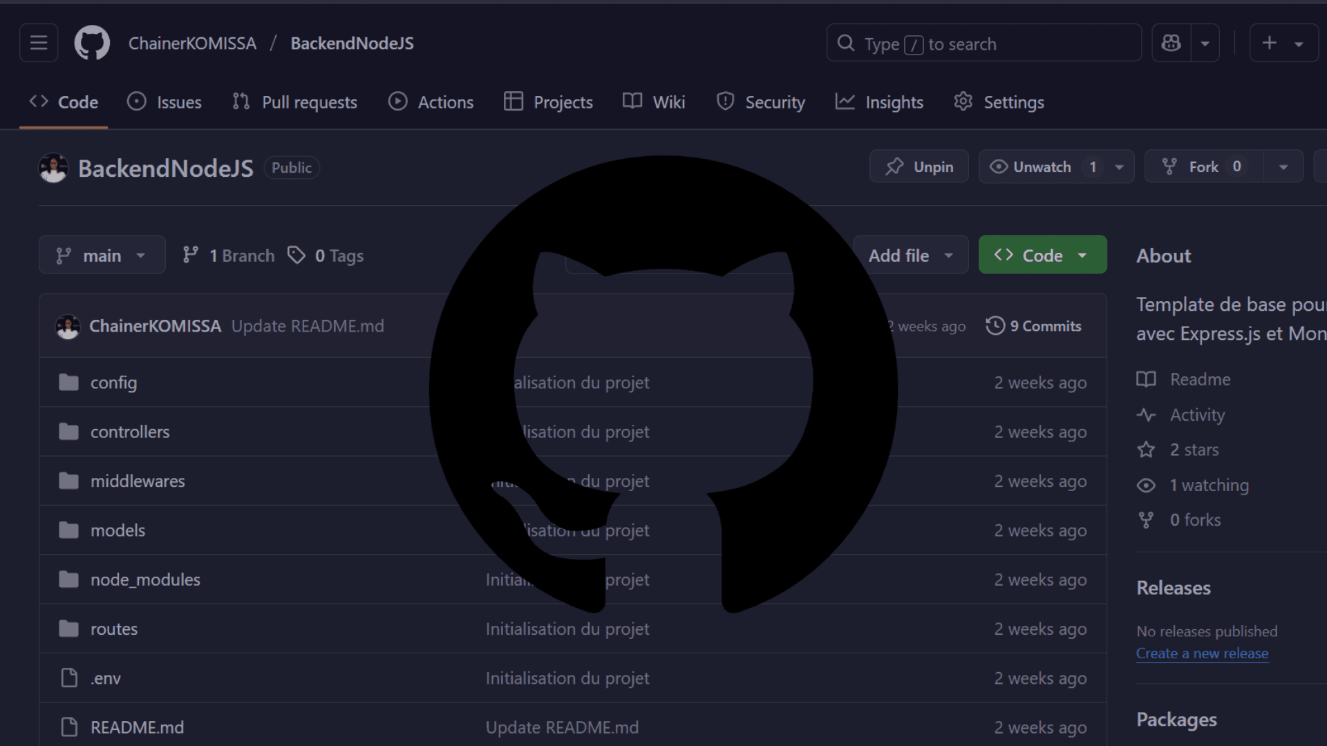 Template de base pour un projet NodeJS avec Express.js et MongoDB.